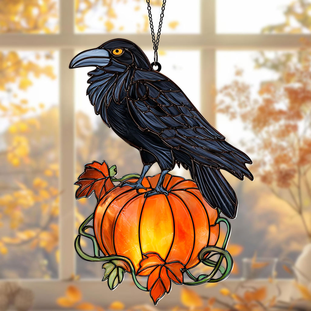 Black Raven Pumpkin Halloween Acrylic Window Hanging Suncatcher UKHA5130903