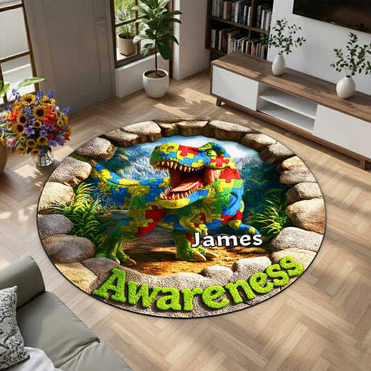 Custom Autism Dinosaur Round Rug THND6130201