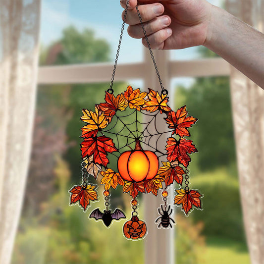 Autumn Halloween Faux Stained Glass Acrylic Suncatcher, Halloween Acrylic Window Hanging Suncatcher UKHA5050901