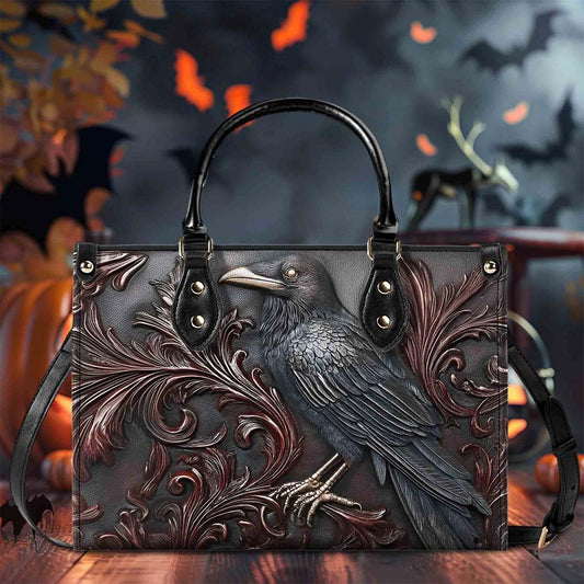 Goth Crow Pu Leather Handbag, Gothic Raven Bags Halloween QFPY5260803