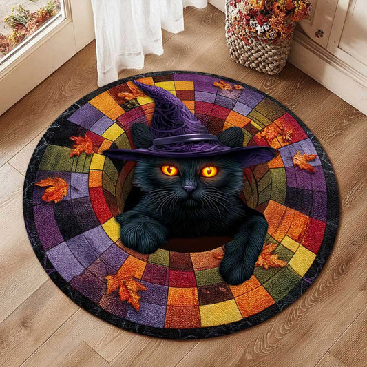 Black Cat Halloween Optical Illusion Rug, Spooky 3D Effect Rug QFTD5160903