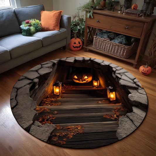 Pumpkin Halloween 3D Printed Rug, Halloween Round Mat UKHA5151001