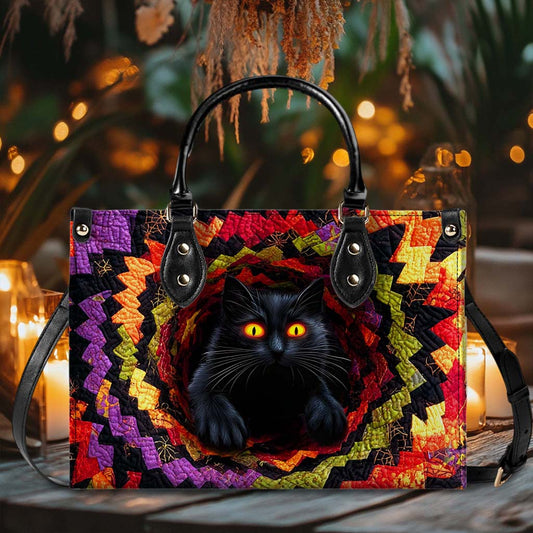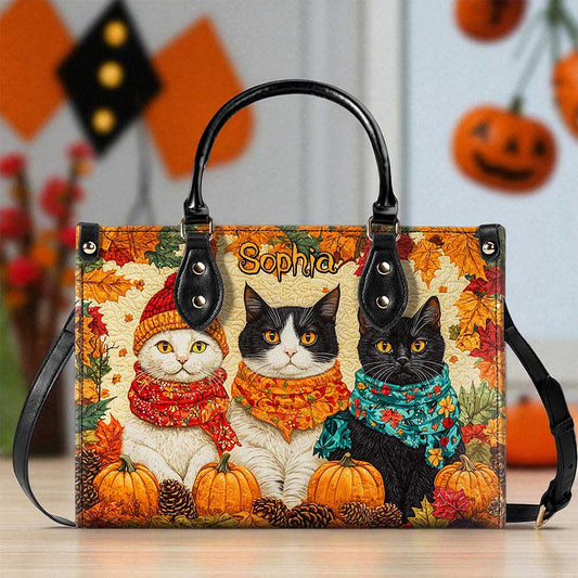 Quilt Fall Cat Leather Handbag Halloween NPND5250802