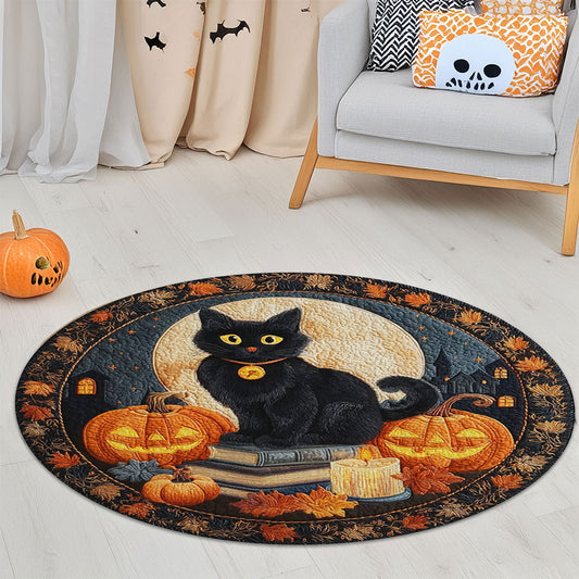 Black Cat Halloween 3D Printed Rug, Halloween Round Mat UKTO5190904