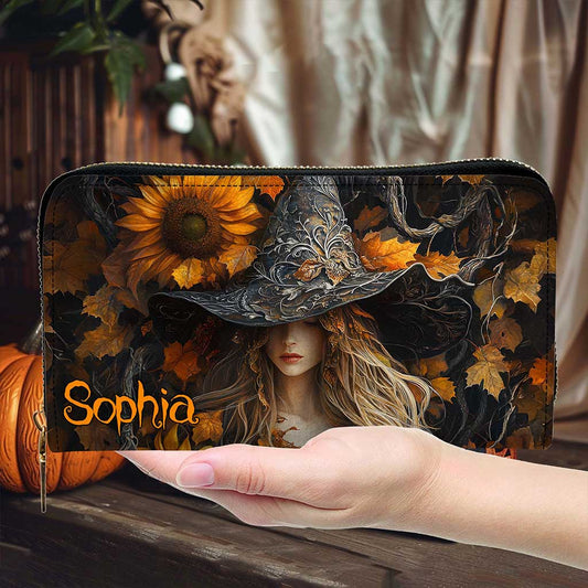 Personalized Halloween Witch Print 3D Leather Handbag, Fall Leather Handbag & Wallet QFTD4260801