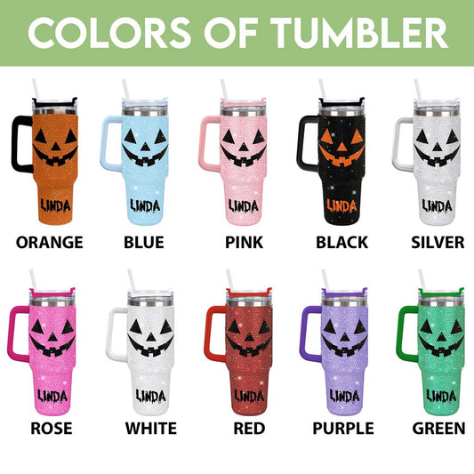 Personalized Halloween Bling 40 Oz Tumbler, Pumpkin Bling Cup, Halloween Tumbler, Fall Cup, Pumpkin Tumbler QFTD4240701