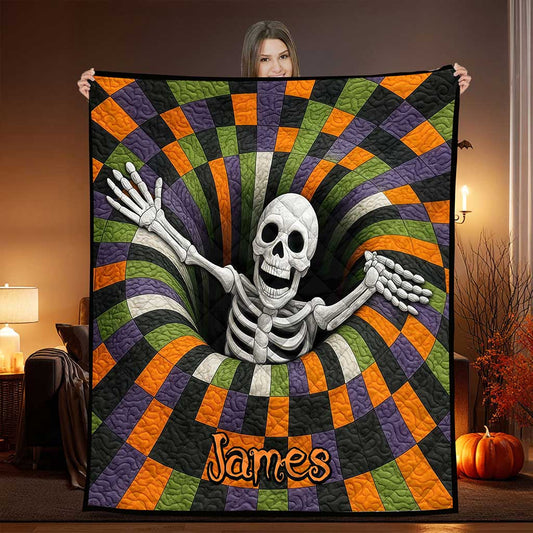 Custom Skeleton Halloween Quilted Blanket UKND5011003