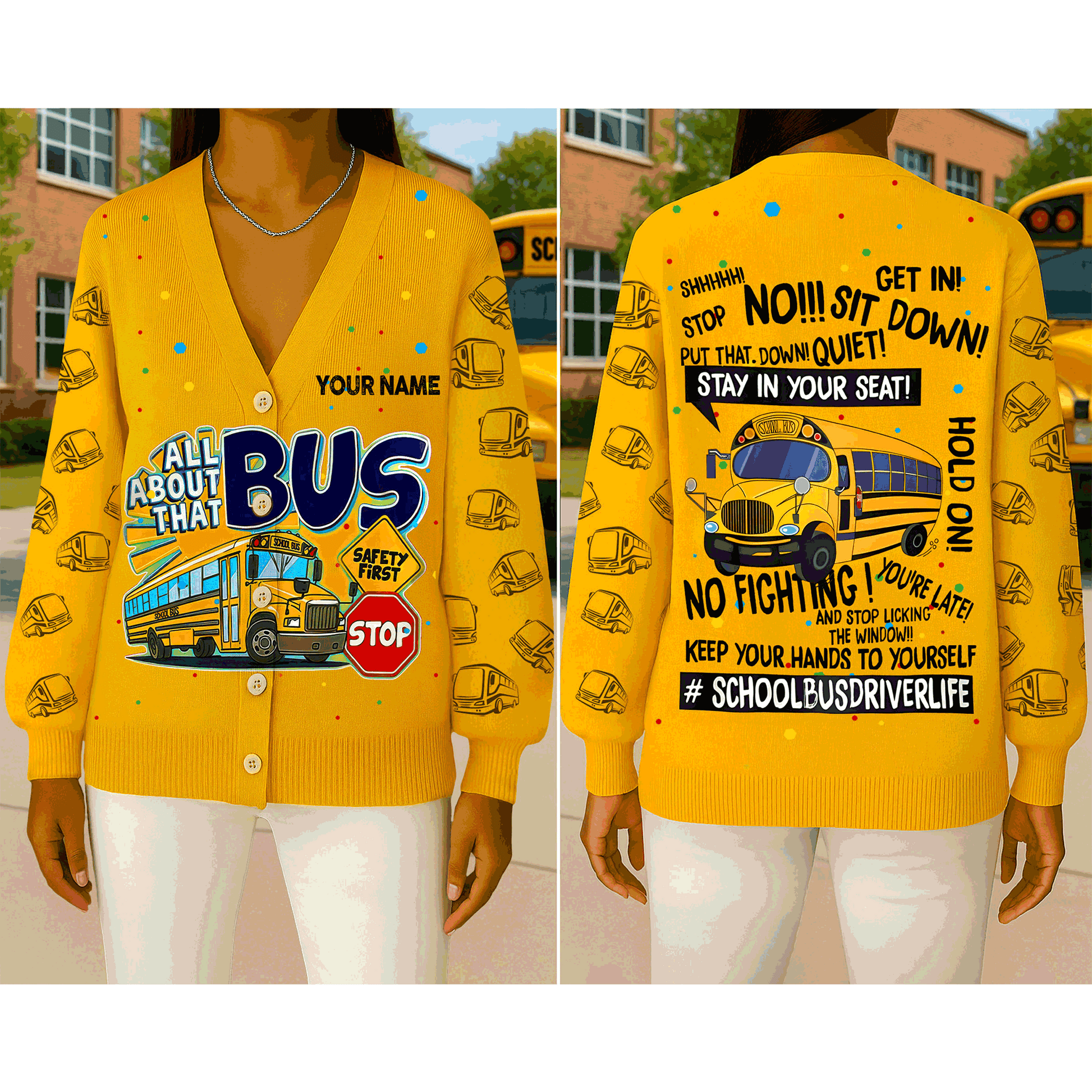 Personalized Name School Bus Driver Knitted Cardigan UKND5091001