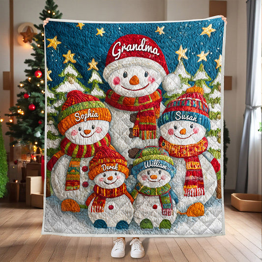 Personalized Snowman Grandma & Grandkids Quilted Blanket QFNT5151005