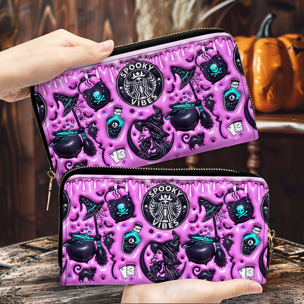 Personalized Halloween Witch Print 3D Leather Handbag, Fall Leather Handbag & Wallet QFTD4260801